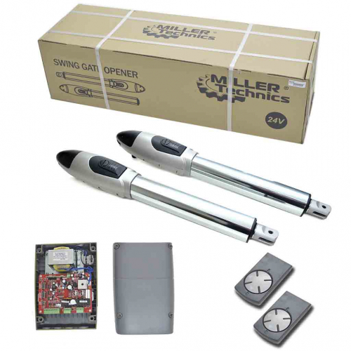 1. Привод Miller Technics 4000 - 2 шт. Двигатель привода Miller Technics 4000 рассчитан на напряжение 24 Вольт, что и является залогом безопасности данной модели. Его мощность - 120 Вт. Не удивляйтесь, если обнаружите в инструкции "мощность в 150 Вт". Производитель указал мощность топовой версии Miller_Technics_5000 для приводов серии Miller Technics 4000 и Miller_Technics_3000, хотя их двигатели такой мощностью не обладают. Маркетинг?
